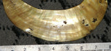 This vintage Gold lip shell (Pinctada maximums) was carved in a ½ moon shape from a gigantic shell, also called the Kina (as the local money’s name is). Shell has uneven edges in places as expected from a shell.