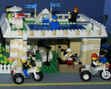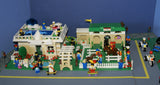 UNIQUE CUSTOM LEGO SET, POOL PARTY AT THE BERMUDA RANCH: 1101 PCS: 27, NOW RARE, RETIRED "TOWN" MINIFIGURES (1978-2010). HORSES, COLT, DOG, OWL, HOUSE, STABLES, GARDENS, FOUNTAIN, VEHICLES, BUGGIES, HARBOUR, MULTIPLE ACCESSORIES ETC (KIT 19)