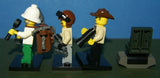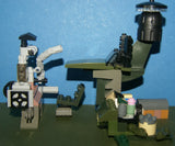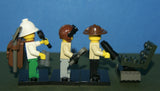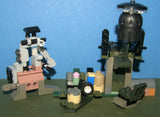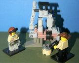 CUSTOM LEGO SET (132 pieces): ADVENTURERS IN THE DESERT (YEAR 1998) 5 CUSTOM BUILDS & 3 NOW RARE RETIRED MINIFIGURES: DR. CHARLES LIGHTNING, JOHNNY THUNDER, BARON VON BARRON, 2 MACHINES, RECLINER, TREASURE CHEST, STOOL & ACCESSORIES. KIT 69