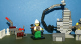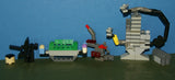LARGE CRANE WITH 2 MOBILE ARMS, BOTH BUILT ON HINGES ALL ALONG: THE ARMS CAN PILE FINDS ONTO THE CRANE TO SAVE HUMAN LABOR: IN THIS CASE, SILVER AND PEWTER BRICKS, JUST DISCOVERED IN A DIG, ARE PLACED ON TOP OF EACH OTHER, TO SHIP TO HEADQUARTERS LATER. A LOT OF SIDE TRAYS ATTACHED TO THE CRANE ARE MOBILE AS WELL: 81 PCS