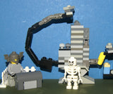 CUSTOM LEGO SET (154 PCS) ADVENTURERS ORIENT EXPEDITION YEAR 2003, 6 CUSTOM BUILDS 4 RARE RETIRED MINIFIGURES: LORD SAM SINISTER DR. CHARLES LIGHTNING SKELETON GREY GUARD + HELMET BENCH CRANE, 2 WORK TABLES TREASURE CHEST FENCES STOOL ETC.. KIT 71
