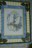 1978 AUSTRALIAN BIRD LITHOGRAPH FROM “PARROTS OF THE WORLD” BY BILL COOPER PROFESSIONALLY X2 MATTED AND FRAMED IN UNIQUE SIGNED HAND PAINTED FRAME WITH LEAVES MOTIFS 23,5" X 19" BEAUTIFUL WHIMSICAL DESIGNER WALL ART DÉCOR DFPO75 COCKATOOS