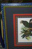 1978 AUSTRALIAN BIRD LITHOGRAPH FROM “PARROTS OF THE WORLD” BY BILL COOPER PROFESSIONALLY (X5) HAND PAINTED MATS AND FRAMED IN UNIQUE SIGNED HAND PAINTED FRAME 27" X 22,5" BEAUTIFUL DESIGNER WALL ART DÉCOR DFPO74