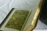 ITALIAN FLORENTINE MARBLING MOTIFS ON THE INSIDE OF THE BOOK COVER, 18 C. PATTERN BASED PAPER, MARBLED ON LAID, ANTIQUE, HANDMADE LINEN RAG PAPER, AND GILT-EDGED PAGES WITH 24 KARAT GOLD-LEAF AND RED RIBBON PAGE MARKER.