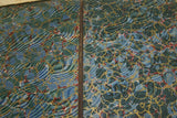 ITALIAN FLORENTINE MARBLING MOTIFS ON THE INSIDE OF THE BOOK COVER, 18 C. PATTERN BASED PAPER, MARBLED ON LAID, ANTIQUE, HANDMADE LINEN RAG PAPER, AND GILT-EDGED PAGES WITH 24 KARAT GOLD-LEAF AND RED RIBBON PAGE MARKER.