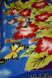 HIGH QUALITY HAND PAINTED TEXTILE FABRIC SARONG, PAREO, SHAWL, SIGNED BY THE ARTIST: VIBRANT HIBISCUS AND BUTTERFLIES, SUPERB RICH COLORS 70" x 48" (no 1A) WITH FRINGES