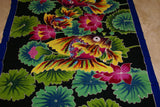 HIGH QUALITY HANDPAINTED MULTICOLOR FABRIC SARONG SIGNED BY THE ARTIST THAT CREATED IT. INTRICATE DESIGNS WITH DETAIL MOTIFS OF TROPICAL AQUATIC PLANTS, LOTUS OR WATER LILY AND ORNATE FISH.