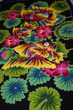 HIGH QUALITY HAND PAINTED TEXTILE FABRIC SARONG, SIGNED BY THE ARTIST. VIBRANT COLORS & VERY DETAILED MOTIFS OF FISH & LOTUS, LILY PADS, 70” x 48” (no 20B)