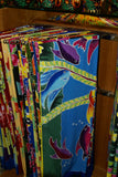 Sexy Skirt, Quick Bathing Suit Cover-up or Beach mat, Shawl, Scarf, Tropical cheerful Wrap, Belt, Toga Dress, Pool Party Wear, Tablecloth, Curtains or drapes, Turban, Wall Art (we have hand carved hanging rods to hang it from), Throw cover for chairs or couches, also as a gorgeous unique colorful Fabric to make one of a kind clothes or pillows with.