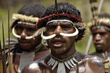 Although the mountainous highlands and their rainforests can get very cold, they wear nothing else but these few pieces of clothing, except for a few feathers or perhaps a boar’s tusk through their nose. Since they remain practically naked, coating their bodies with insulating pig fat helps keep warm in the mountain climate.