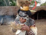 The men are much more concerned about their beauty than women, therefore, they are extremely fond of body ornamentation and decorate themselves elaborately with feathers and shells, especially for celebrations (traditional headdresses are made of cockerel feathers in a fetching circular crown). Beauty is only a matter of taste and here the ornamentation can be rather elaborate. Warrior’s heads can be adorned with furs, shells, animal fangs, teeth and bird feathers.