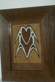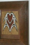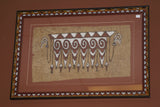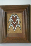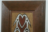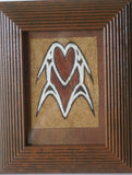 FRAMED Sentani Tapa Bark Cloth from Papua New Guinea. Handpainted with Natural Pigments by Tribal Artist: Stylized Abstract Dancing Fish Motif 10.25" x 8.25" (DFBA10)
