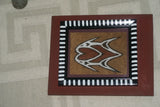 CUSTOM FRAMED Rare Tapa Kapa Bark Cloth (Called Kapa in Hawaii), from Lake Sentani, Irian Jaya, Papua New Guinea. Hand painted with natural pigments by a Tribal Artist: Abstract Geometric Stylized Fish Motifs 7"x 6" DFBA7