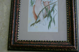 21,5"X 17” 1955 GOULD PINK COCKATOO BIRD FOLIO LITHOGRAPH FRAMED IN SIGNED DETAILED ARTIST HAND PAINTED FRAME AND MAT TO ENHANCE THE ART WITHIN GORGEOUS DFPN80A DESIGNER WALL ART DÉCOR