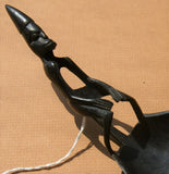 Genuine vintage hand carved Indonesian Water Buffalo Horn Serving tool with a male ancestor carving on the handle meant to protect the owner from dark magic.