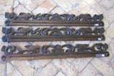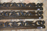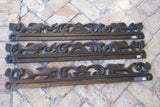 Each was delicately sculpted, with details and by hand, by a master carver, out of one solid piece of wood, and will compliment any window top, or door, or enhance any textile or drapes that hang from them on your wall, adding a rich look to your decor.