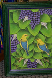 GIGANTIC 31”x 25” ORIGINAL DETAILED COLORFUL BALINESE PAINTING ON CANVAS BY RENOWN UBUD ARTIST RAINFOREST PARADISE WITH FOLIAGE BIRDS FRUIT FRAMED IN CUSTOM FRAME HAND PAINTED TO MATCH DFBB40 DESIGNER DECORATOR WALL DÉCOR COLLECTOR ARTWORK MASTERPIECE