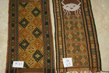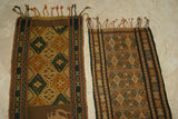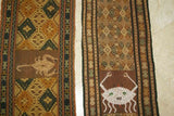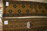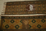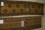 Hand woven Sumba Hinggi Songket Ikat Textile (49" x 13") Made from Hand spun Cotton, Dyed with Natural Pigments. INTRICATE GEOMETRIC DESIGNS Adorned with Crab MOTIF Created with Nassa Shells (49" x 13") SR43 RUST RED GOLDS GREENS