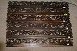 UNIQUE INTRICATELY HAND CARVED ORNATE WOOD HANGER 31” (ROD, RACK) USED TO DISPLAY RARE OR PRECIOUS TEXTILES ON THE WALL, SUPERB BAS RELIEF MOTIF OF LACY FOLIAGE FLOWERS FRUIT VINES CHOICE 422 OR 423 COLLECTOR DESIGNER WALL DECOR