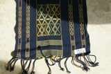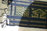Hand woven Sumba Songket Hinggi Ikat (53" x 13") with Geometric Designs. Made from Handspun Cotton, Dyed with Natural Pigments (SR61) earthtones wall décor blues golds designer textile collector
