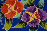 HIGH QUALITY HAND PAINTED TEXTILE FABRIC HALF SARONG OR BEACH SKIRT, SUMMER TABLE RUNNER SIGNED BY THE ARTIST: DETAILED MOTIFS OF BLOOMING DOUBLE HIBISCUS, RICH COLORS 74" x 23" (no SC11)