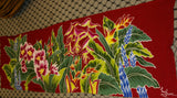 HIGH QUALITY HANDPAINTED TEXTILE FABRIC ½ SARONG OR BEACH SKIRT, SWIMMING SUIT COVERING, OR TABLE RUNNER, ETC…. SIGNED BY THE ARTIST. VIBRANT COLORS WITH BLOOMING MULTICOLOR TROPICAL PLANTS.