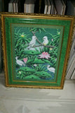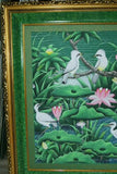 GIGANTIC 31”x 25” ORIGINAL DETAILED COLORFUL BALINESE PAINTING ON CANVAS SIGNED BY RENOWN UBUD ARTIST RAINFOREST PARADISE WITH FOLIAGE POND LOTUS FLOWERS IBIS EGRET STARLING BIRDS FRAMED IN SIGNED CUSTOM FRAME HAND PAINTED TO MATCH DFBB12 DESIGNER ART
