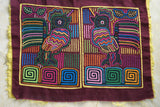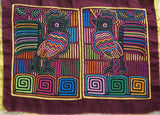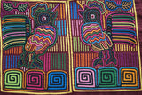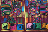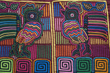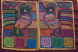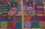 Kuna Indian Folk Art Mola Blouse Panel from San Blas Island, Panama. Museum Quality Hand stitched Reverse Applique: Colorful Abstract, Detailed : Singing Birds 17” X 13” (3A)