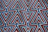 Kuna Indian Folk Art Mola Blouse Panel from San Blas Islands, Panama. Hand-stitched Applique Textile: Geometric Arrow Heads, Blue White & red 14.5" x 10.5”, item 1B
