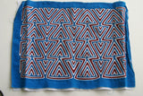 Collectible Folk Art Mola Blouse Panel. Hand stitched Textile by an American Indian Kuna Seamstress. Geometric Abstract Motif of Arrow Heads or Storm Lightning. Blue, white & red: Item 1B