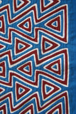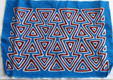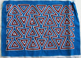 textileCollectible Folk Art Mola Blouse Panel. Hand stitched Textile by an American Indian Kuna Seamstress. Geometric Abstract Motif of Arrow Heads or Storm Lightning. Blue, white & red: Item 1A.