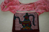 This mola is complete and in good shape but the border on the left side had a tear that we fixed seen on close up on photo 17, it does not affect the mola itself, it is just a rip in the burgundy border, not on the applique work but as a result, we reduced the price.