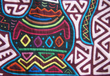 Collectible Authentic Folk Art Panel Handstitched by a Kuna Indian Seamstress. Intricate cheerful kettle motif, mirror images with Traditional maze background reminiscent of the brain coral that surrounds the islands.