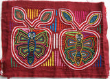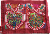 Kuna Indian Traditional Quilted Mola Blouse Panel from San Blas Islands, Panama. Hand Stitched Folk Art Reverse Applique: Butterfly on Apple Mirror Image with Intense Parallel Background 14" x 10 1/4" (1B)