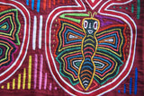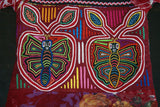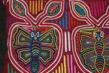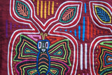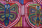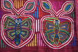 Collectible Authentic Folk Art Panel Handstitched by a Kuna Indian Seamstress. Intricate Butterflies on apples motif, mirror images with Traditional even parallel lines background.