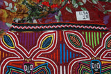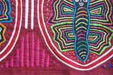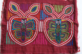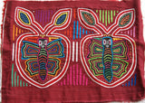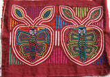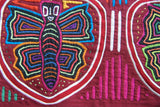 Collectible Authentic Folk Art Panel Handstitched by a Kuna Indian Seamstress. Intricate Butterflies on apples motif, mirror images with Traditional even parallel lines background.