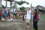 Additional pictures placed here also show a variety of photos from our trips such as my husband distributing goods to the Indian community, village scenes, a mola being started, a Kuna woman wearing one, and also how they can be used in your home to create a great cheerful and colorful one of a kind accent.