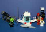 LEGO SPACE INSECTOIDS VS MARTIAL ARTS "BOAT PEOPLE" TEAM: 10 MINIFIGURES: 5 INSECTOIDS, 2 DROIDS, 3 MARTIAL ART & KARATE MFS ON ARMORED BOAT (127 PIECES) KIT ITEM 47