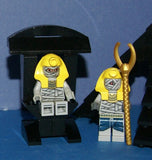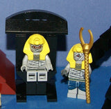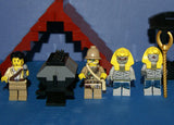 THIS IS A CUSTOM LEGO SET WITH 5 BUILDS, 4 NEW RARE RETIRED LEGO MINIFIGURES OF JAKE RAINES, PROFESSOR ARCHIBALD HALE 7327, & 2 MUMMIES, ONE OF PHARAOH WITH GOLD STAFF AND ONE OF CHIEF SERVANT.