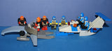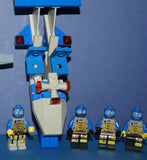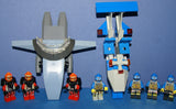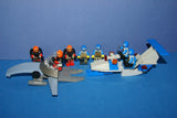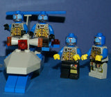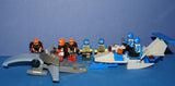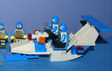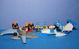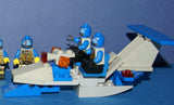 7 NEW, BUT NOW RARE, SPACE UFO MFS, RETIRED LEGO MINIFIGURES: RED ALIENS SPO46 & ROBOT DROIDS SP043 + 2 CUSTOM BUILD AIRJET SKY PONTOONS (73 PCS) KIT SET ITEM 49