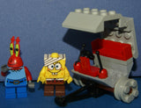 LEGO, UNIQUE CUSTOM CARRIAGE WITH SUNROOF & 2, NOW RARE, (NEW) RETIRED MINIFIGURES: BANDAGED SPONGEBOB 3832 IN HIS STROLLER AND MR KRABS 3825 (27 PCS) KIT 36