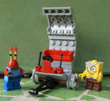 UNIQUE CUSTOM LEGO: JOGGING BABY CARRIAGE + 2 NEW RARE SPONGEBOB RETIRED MINIFIGURES FROM 3825 AND 3832.