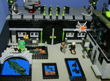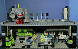 WE ARE GIVING UP ONE OF OUR FAVORITE AND UNIQUE CREATIONS FOR SOMEONE ELSE TO ENJOY, A ONE OF A KIND AND HUGE LABORATORY, BUILT INCORPORATING MANY LEGO SETS, RARE RETIRED MINIFIGURES AND MONSTERS AND ACCESSORIES, AMONG OTHER THINGS.