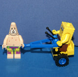 UNIQUE CUSTOM LEGO STEEPLECHASE CARRIAGE + 2 NEW, RETIRED, RARE SPONGEBOB MINIFIGURES FROM 3834 AND PATRICK 3834, BOTH NEW.