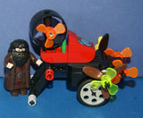 HAGRID, THE HALF GIANT IS A VENDOR HERE. HE SELLS WINDMILL WHEELS TO THE VISITORS THAT WANT TO LEARN HOW TO FLY. HIS WINDMILL CART WAS CREATED WITH 46 NEW LEGO PIECES. ALL THE WHEELS ON THE DISPLAY TURN AND THE CART IS ARTICULATED, ITS HANDLE (WHEN AT REST) IS USED AS A SUPPORT.