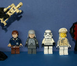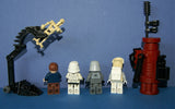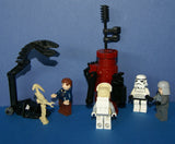 LEGO STAR WARS (EPISODES 4/5/6). 5 NEW, NOW RARE RETIRED MINIFIGURES COLLECTIBLES MFS: HAN SOLO, GENERAL VEERS, REBEL, STORM TROOPER, BATTLE DROID, 1 CRANE & SPY SPOTTING TOWER (KIT SET ITEM 32) 46 PIECES (DISPLAY)
