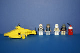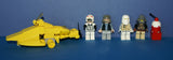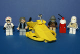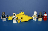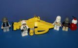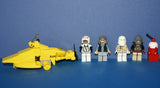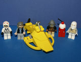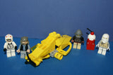 4 RARE RETIRED STAR WARS MINIFIGURES (EPISODE 4/5/6), PLUS 1 REVOLVING RECEPTION TOWER AND 1 YELLOW SUPERSONIC AMPHIBIAN JET VEHICLE.