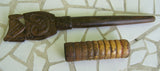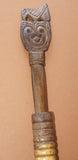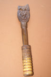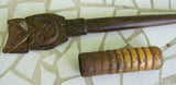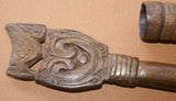 WOODEN LIME CONTAINER (UMBRELLA HANDLE) THAT ENDED UP MYSTERIOUSLY IN THESE REMOTE TROBRIAND ISLANDS & SHOWS PATINA NO LESS! WE COULD NOT RESIST BUYING IT FROM A NATIVE WITH THE POUNDER HE WAS USING IN IT, SHOWING AMUSING INGENUITY. THE OMBRELLA BASE & THE POUNDER (WITH VERY NICE HAND CARVED DETAILS) WERE USED TOGETHER BY THAT SAME TRIBAL MAN WHO WAS VERY PROUD OF THIS UNUSUAL CONTAINER SINCE NOONE ELSE HAD ONE LIKE IT IN THE VILLAGE. No BP6.