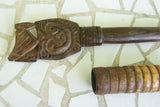 MELANESIA MASSIM TROBRIANDS ISLAND (BETEL LIME) UNIQUE WOOD CONTAINER SET (WITH DELICATELY HAND CARVED POUNDER), PATINA ON UNIQUE FUNNY & INTERESTING UMBRELLA RECEPTACLE WHICH COMES WITH A NICELY HAND CARVED MORE RECENT POUNDER. No BP6