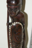 Museum-quality "Cannibal" Warrior, Head Hunter hand carved statuette with protective shield , enhanced by inlays of mother of pearl all over, and created out of rare precious rosewood by a master carver, a tribal sculptor from the remote Trobriand Islands, Massim region, Melanesia. The shields would be empowered by a wizard/sorcerer/shaman before battle to insure victory & following feast.